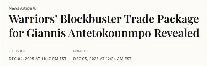 “勇士方面同样一直不愿考虑为‘即战力冲冠’而押上全部的交易,这类交易往往需要送走追梦,但若是能得到字母哥,这一局面大概率会改变勇士管理层的考量。”
